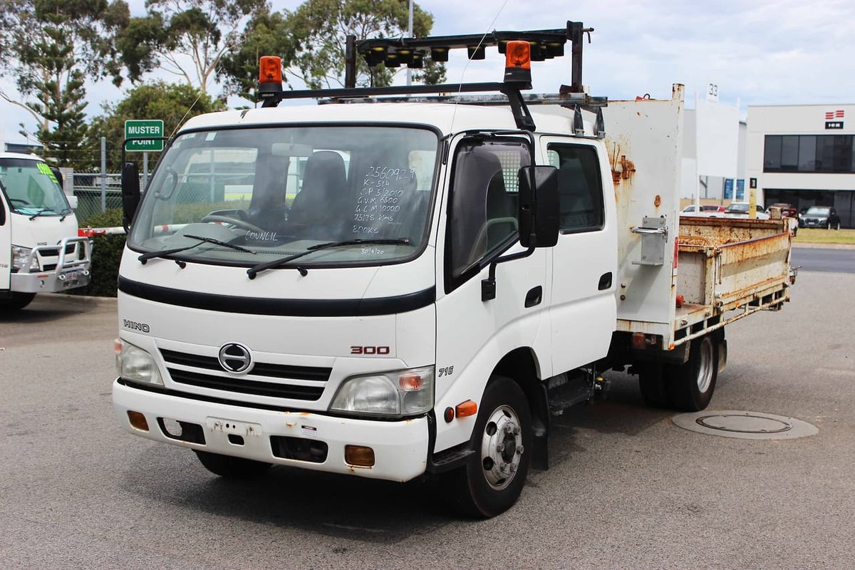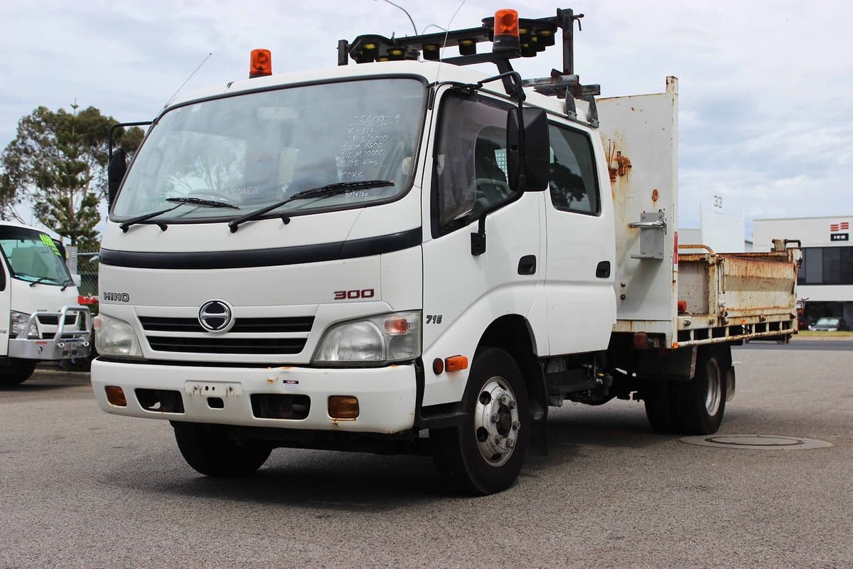 This 2010 Hino 300 Series 716 Manual Crew Cab Tipper with Drop Side Tray and Small Crane is still on it's way to go through our reconditioning process.