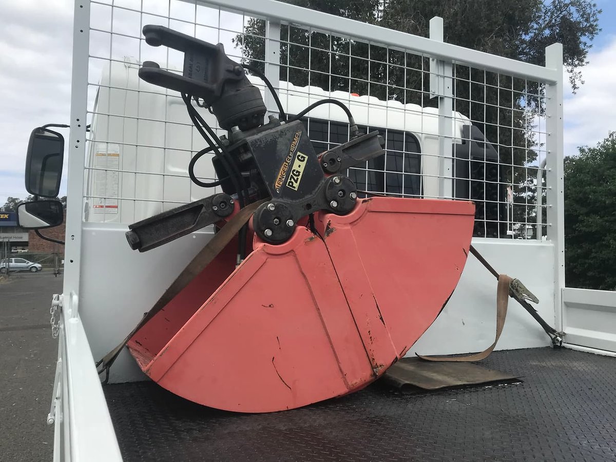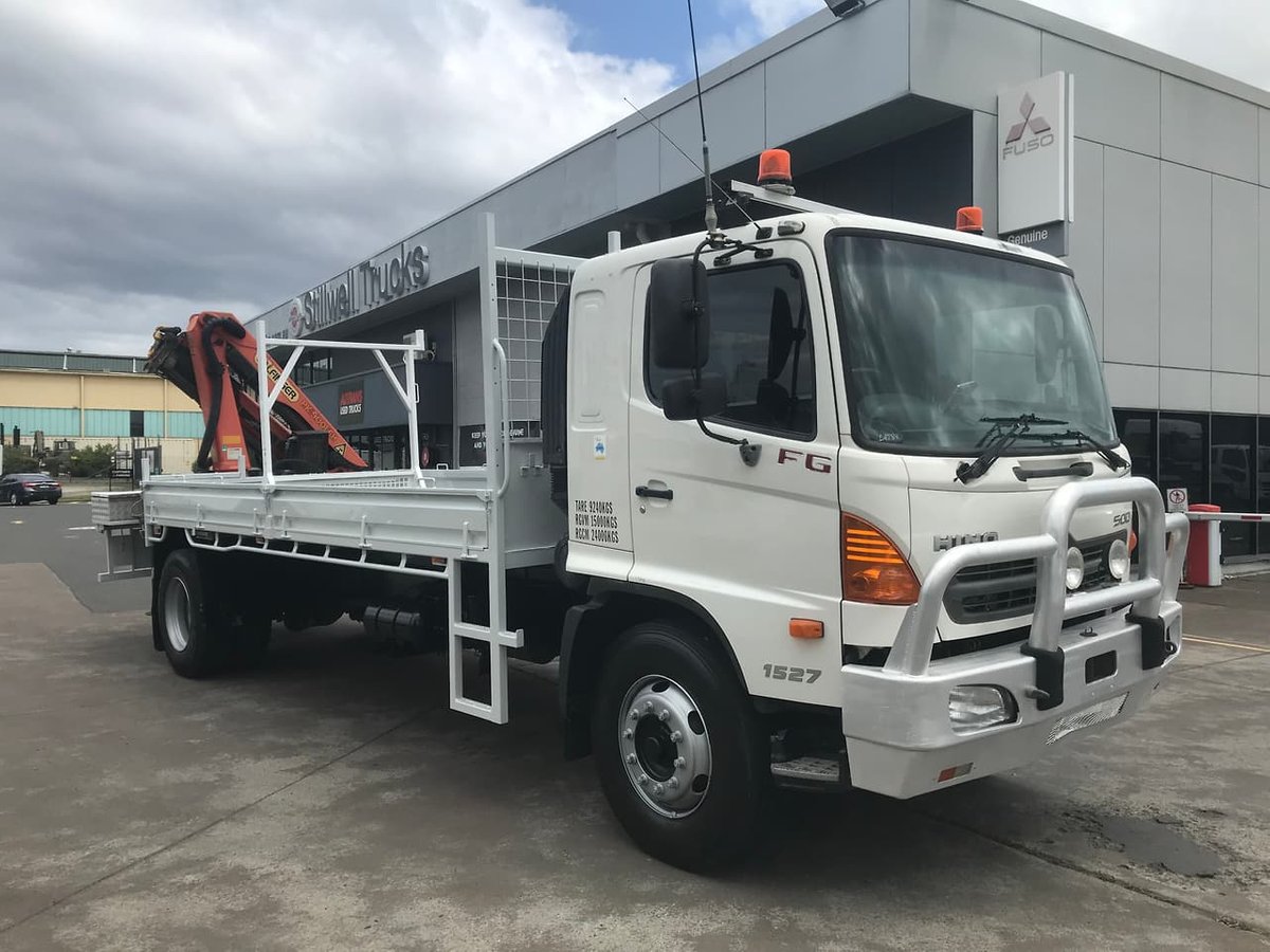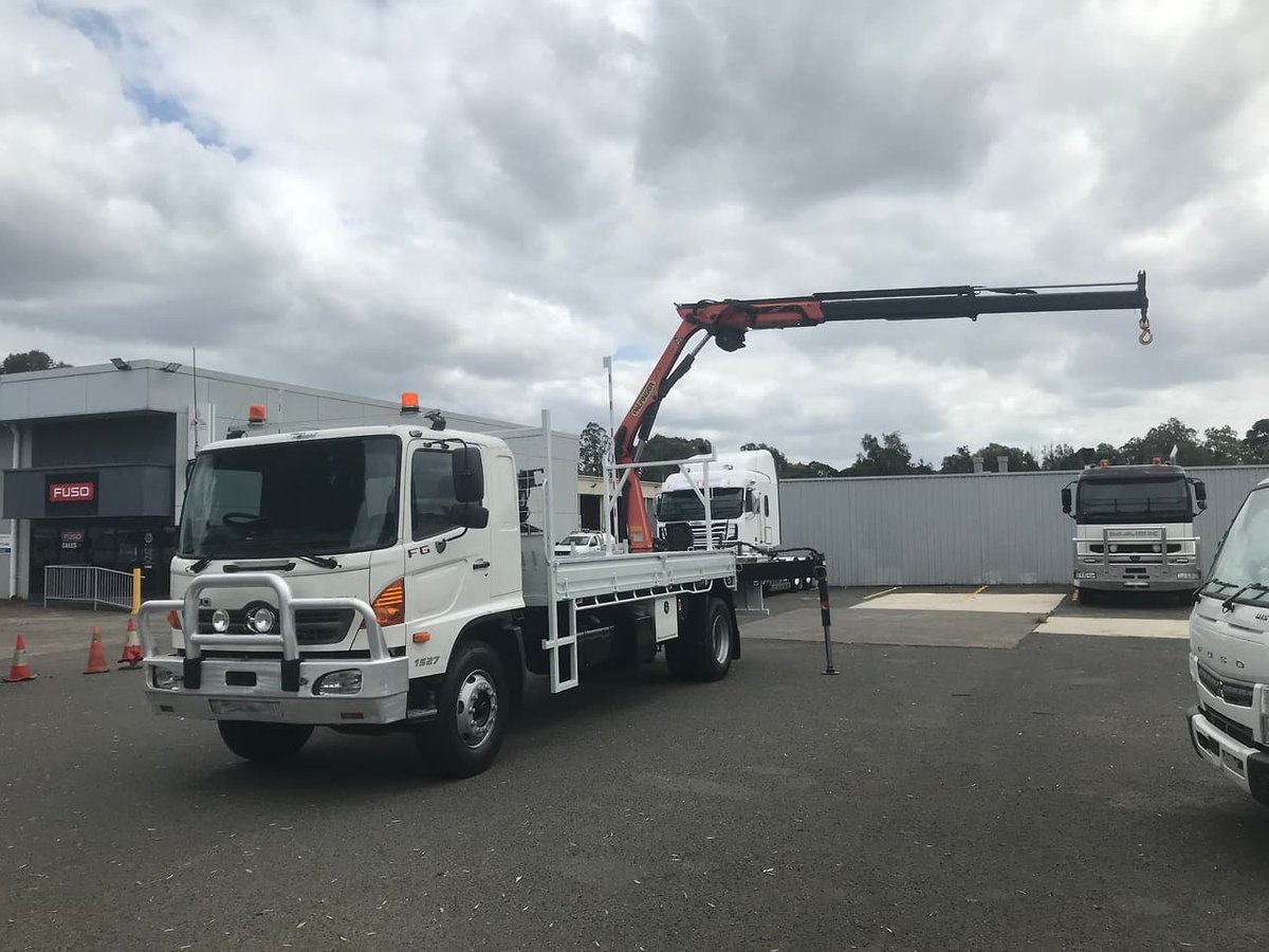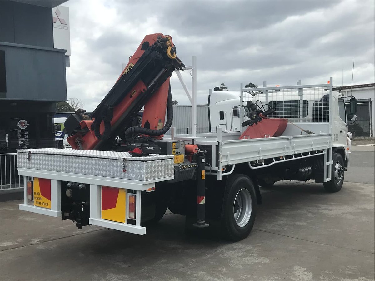 "2009 Hino FG 1527, 270Hp, 6 speed manual transmission, Spring suspension, Steel tray with drop sides, Palfinger PK9001-EH A Crane (Specs in photos), Hydraulic grab bucket and fittings, Alloy bullbar, Driving lights, Safety beacons.